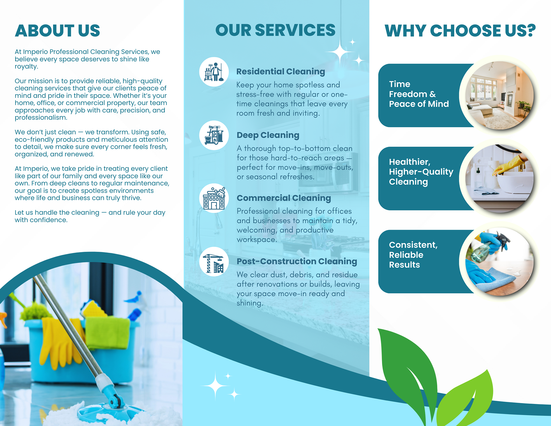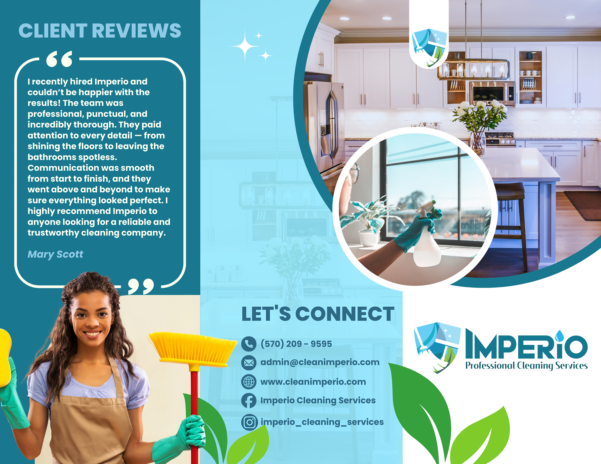 Imperio Professional Cleaning Services believes every space deserves to shine like royalty. The company provides reliable, high-quality cleaning services for homes, offices, and commercial properties, giving clients peace of mind and pride in their spaces. Each job is handled with care, precision, and professionalism, using safe, eco-friendly products and meticulous attention to detail. Imperio doesn’t just clean — it transforms spaces into fresh, organized, and renewed environments. Committed to treating every client like family and every space like their own, Imperio offers both deep cleaning and routine maintenance services designed to help homes and businesses thrive. With Imperio handling the cleaning, clients can move through their day with confidence.